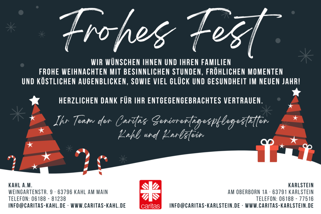 die festliche Jahreszeit lädt uns ein, innezuhalten, gemeinsam schöne Momente zu genießen und auf ein ereignisreiches Jahr zurückzublicken. Wir danken Ihnen von Herzen für das Vertrauen, das Sie uns entgegenbringen,